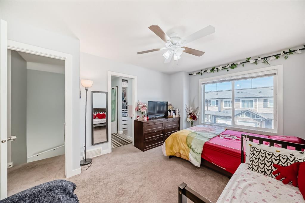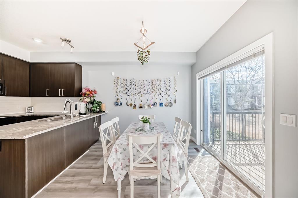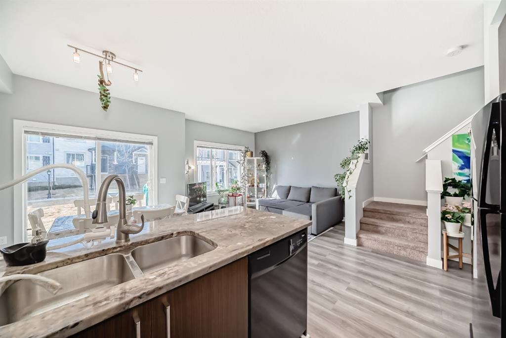 Beautifully maintained 2-storey townhouse condo built in 2013, offering 3 bedrooms, 3 bathrooms, and a front-attached garage. The open-concept main floor features a modern kitchen with stone countertops, black appliances, and a bright living and dining area. Upstairs includes three spacious bedrooms, including a primary suite with walk-in closet and ensuite, plus convenient upper-level laundry. Recent updates include fresh paint and vinyl plank flooring. Partially finished basement with additional room and future development potential. Enjoy a sunny south-facing patio backing onto greenspace. Located close to parks, shopping, and amenities. Immediate possession available.