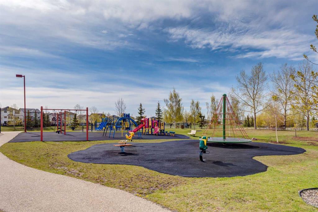 Exceptional value with low condo fees in the highly sought after community of Rocky Ridge, offering west facing mountain views and a quiet, private location in the complex. The entry level welcomes you with a spacious foyer, additional storage and direct access to the single attached heated garage, complete with an EV charging station. The main floor features 9’ ceilings, rich cherry hardwood flooring and a bright open concept design ideal for everyday living. The kitchen connects to the dining and living areas, while large windows flood the space with natural light. Just off the living room, a patio door opens to a spacious deck; perfect for relaxing or entertaining. Upstairs, enjoy the convenience of upper level laundry. The primary bedroom captures beautiful mountain views and includes a 3 piece ensuite, while a second bedroom and full 4 piece bathroom offer flexibility for family, guests or an additional space for a home office. Recent updates include; Furnace (2021), Epoxy flooring in garage (2024), Hot water tank (2025) and Humidifier (2025). The complex itself includes a spacious fitness centre, ample visitor parking, gazebo area and included in the condo fees is access to the Rocky Ridge Community Center. The community provides easy access to parks, playgrounds, walking paths, shopping & schools. Just 15 minutes from the University of Calgary, Foothills Hospital, Calgary Children’s Hospital, Market Mall, Bowness Park, Canada Olympic Park & more!