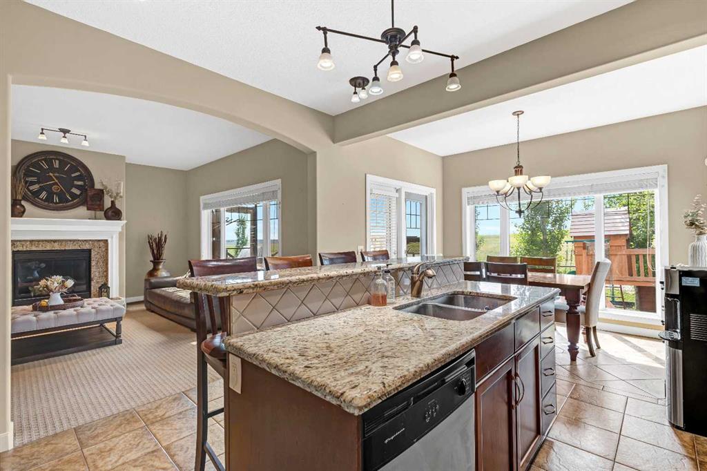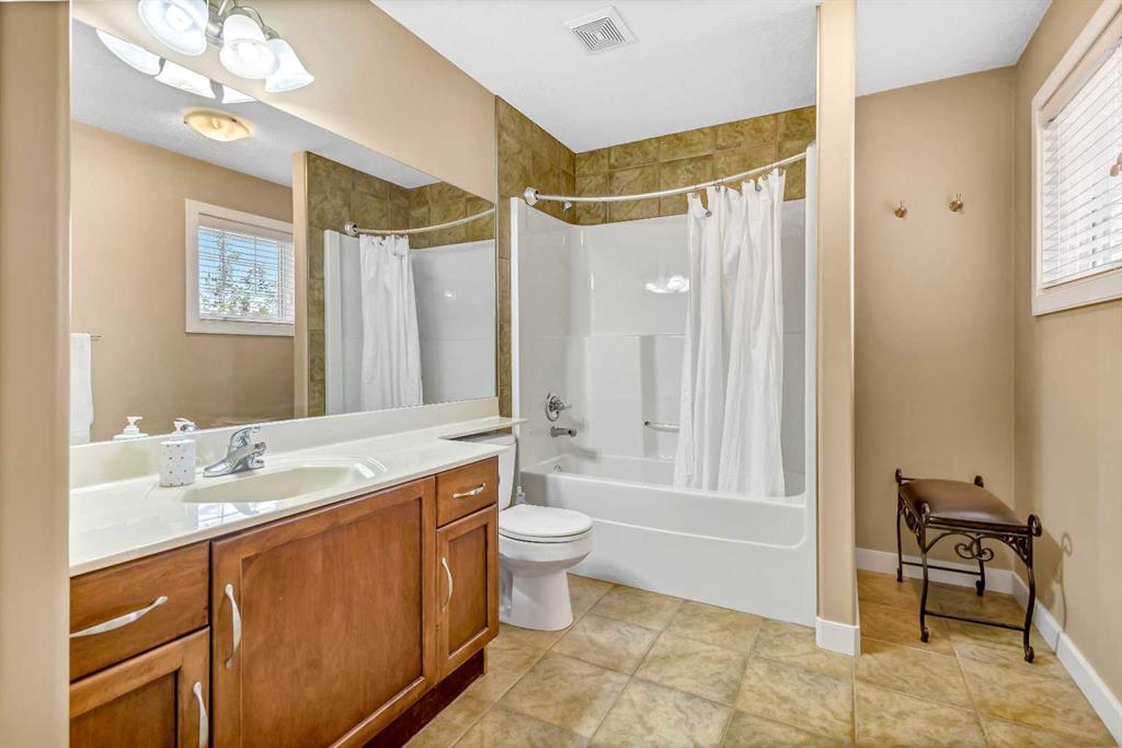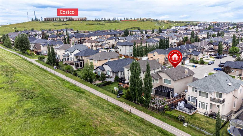 Welcome to 84 Sherwood Rise NW, a beautifully upgraded home offering over 3,100 sq. ft. of total living space including a fully finished basement, Central A/C, and backing directly onto peaceful green space with no rear neighbors. The main floor is thoughtfully designed with 9-foot ceilings, a bright home office or den, and a spacious laundry room complete with sink and cabinetry. The open-concept kitchen, dining nook, and living room create an inviting space for everyday living and entertaining. The kitchen features granite countertops, stainless steel appliances, a corner pantry, and a large island with bar seating, while the living room centers around a cozy gas fireplace. From the dining nook, step into the enclosed sunroom with UV-blocking glass panels—perfect for year-round use—which opens onto a private backyard oasis with a hot tub on the spa deck, underground sprinklers, a children’s play structure, and beautiful views of the surrounding greenspace. The driveway is bouncy and rubber-coated, making them non-slip in winter and easy to maintain -easy to shovel, less icy, gentle on knees, and perfect for road hockey or basketball. Upstairs, you’ll find three generously sized bedrooms including a spacious primary suite with two walk-in closets and a 5-piece ensuite featuring dual vanities, a deep soaker tub, separate glass shower, and a door for the toilet. There is a huge bonus room boasting beautiful northeastern views of morning sunrise. The bonus room includes surround sound wiring and can easily be used as a fourth upstairs bedroom or family living space. The fully developed basement continues to impress with a fifth bedroom, a large recreation and media room with surround sound, a home gym or flex area, and a full bathroom with heated tile floors. With premium finishes throughout, this home combines comfort, style, and functionality—perfectly situated on a quiet, family-friendly street in the desirable community of Sherwood.