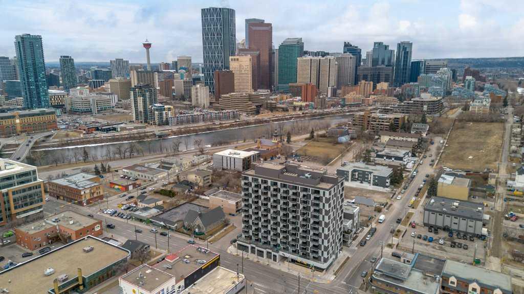 If you've been searching for an investment that is located in a short term-friendly building with titled underground parking and storage, this could be the unit! This 6th floor apartment is ideally positioned in the centre of the building and offers an excellent layout with bright east-facing windows and balcony. Currently tenant-occupied with a wonderful, reliable tenant that is looking to stay, this is a turnkey opportunity for investors or a flexible option for future short-term rental use. The thoughtfully designed floor plan features a private bedroom with sliding doors, allowing for either separation or an open-concept bachelor-style layout. The modern kitchen is complete with white cabinetry, stainless steel appliances and a large island that flows seamlessly into the living area, creating a functional space for both everyday living and entertaining. The living room is positioned to enjoy views or enjoy your favourite show hile meal prepping at the island. A stacked laundry closet is conveniently located adjacent to the bedroom, while a spacious front entry closet and a well-appointed 4-piece bathroom add to the unit’s practicality. This building is short-term rental friendly and offers enhanced convenience with virtual concierge services and smart technology including facial recognition access. Residents also enjoy a rooftop patio with stunning downtown views, fire pits and BBQ stations, along with an indoor social and workspace area. Located just steps from the vibrant amenities of Crescent Heights & neighbouring communities, you’re within walking distance to the shops, cafés and restaurants along Edmonton Trail and Centre Street, including local favourites like Blue Star Diner, Holy Grill and Pizza Culture. Enjoy quick access to the Bow River pathways and Rotary Park with its panoramic downtown views. Commuting is effortless with direct access to downtown, public transit routes and major roadways including Centre Street and Deerfoot Trail. Checkout the 3D Virtual Tour & book your showing today.