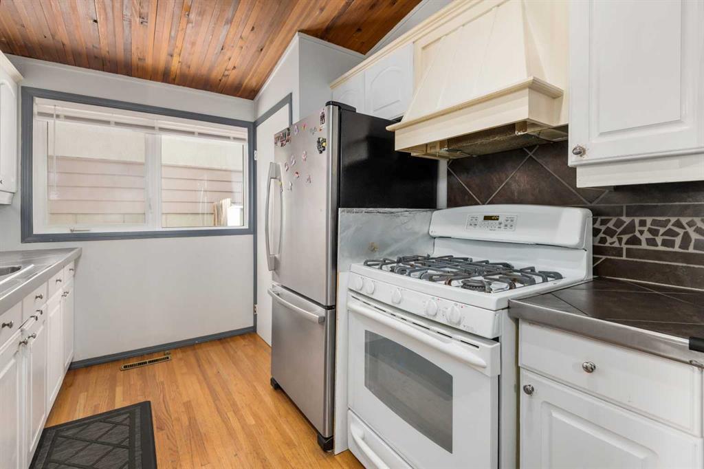 Beautiful character home located in the desirable community of Southwood, offering over 1,900 sq ft of developed living space. With its fully finished BRICK EXTERIOR and newer roof, this home presents great curb appeal and long-term value. The main floor features a spacious and inviting family room with a cozy fireplace, complemented by hardwood and tile flooring throughout. VAULTED CEILINGS with exposed beams add a warm, timeless feel, while the kitchen offers a gas stove, under-cabinet lighting, and ample cupboard space, along with a bright eat-in dining nook. The main level includes two generously sized bedrooms and a fully updated bathroom. At the rear, a versatile room with French doors—previously used as a third bedroom—can easily be converted back or used as a formal dining room or home office. The basement includes an illegal suite, providing additional flexibility with a newer kitchen, updated flooring, a large living/recreation area, and three bedrooms—ideal for extended family or other potential uses. Over the years, several KEY UPDATES have been completed, including WINDOWS, and a NEW FURNACE (2026). Conveniently located within WALKING DISTANCE to the LRT, shopping such as Superstore and Walmart, and a variety of restaurants, this home offers both comfort and accessibility.