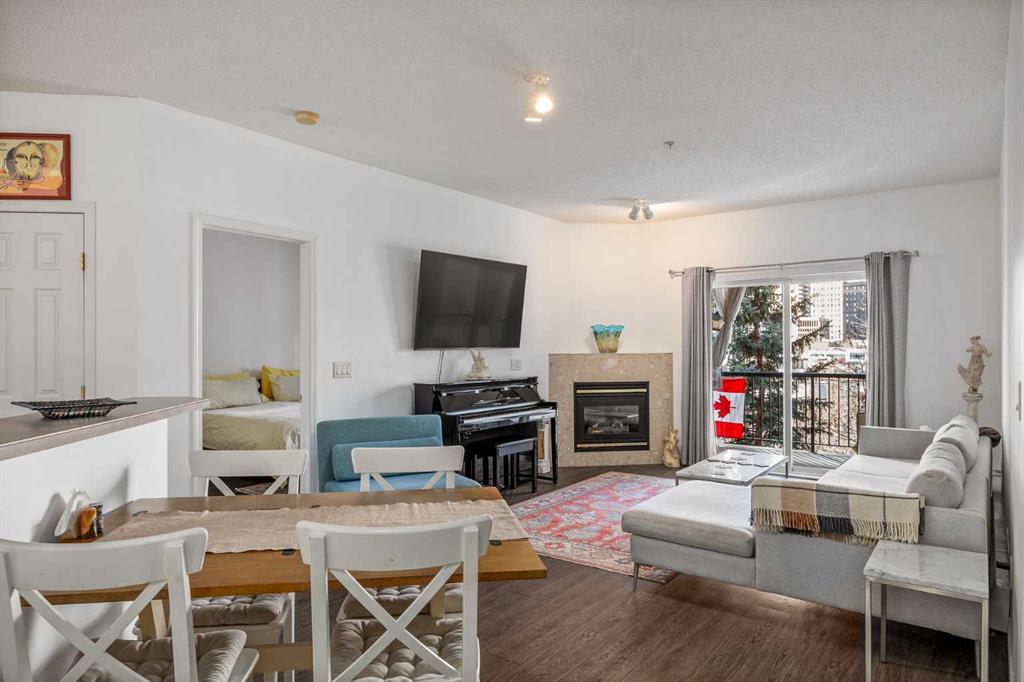 Enjoy stunning downtown views from this spacious and thoughtfully designed 2-bedroom, 2-bathroom condo in Polo Terrace, offering 882 sq ft of stylish inner-city living in the heart of Beltline. This bright, open-concept unit features 9’ ceilings, a welcoming kitchen with ample white cabinetry and matching appliances, and a cozy corner gas fireplace in the living area, opening directly onto a covered balcony. The generously sized primary bedroom includes a walk-through closet and private 4-piece ensuite, while the second bedroom is ideally positioned on the opposite side of the unit for added privacy. Additional highlights include in-suite laundry, in-unit storage, and titled heated underground parking. Whether you’re looking to upsize, downsize, or invest, this move-in ready condo offers flexible living in one of Calgary’s most vibrant inner-city neighbourhoods and is a true gem in a pet-friendly, well-managed building. Perfectly located just steps from the Calgary CTrain, shops, restaurants, and green spaces such as Central Memorial Park and Lindsay Park, with quick access to Stampede Park and the Scotiabank Saddledome, this home delivers the ultimate combination of comfort, convenience, and vibrant urban living.