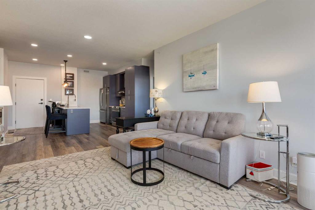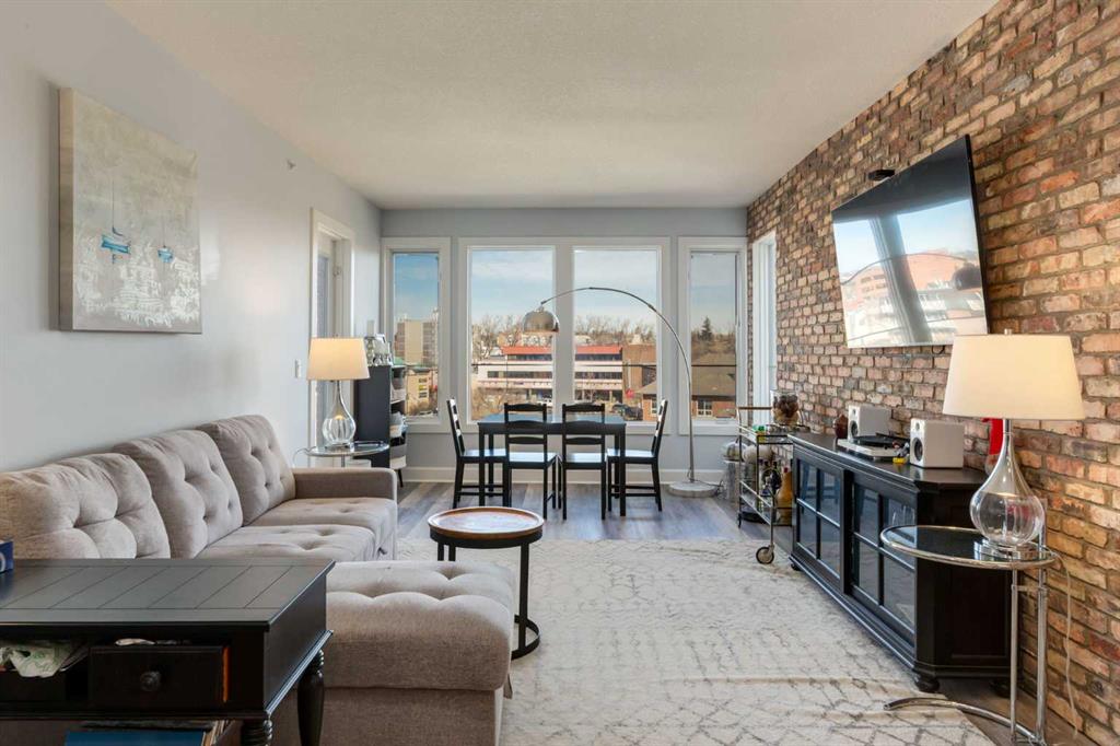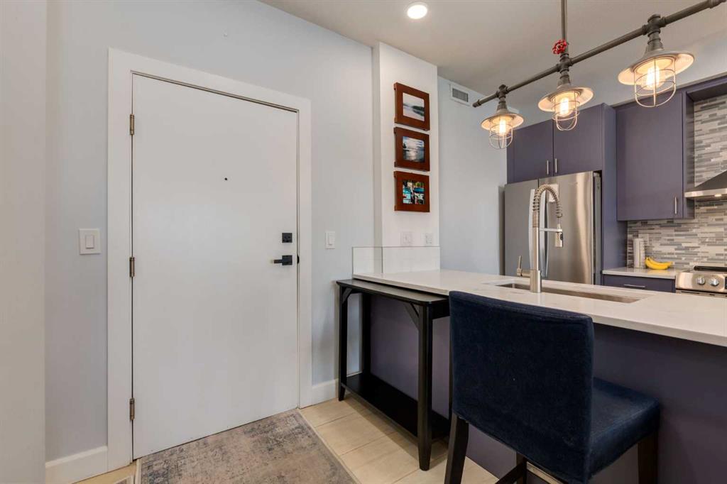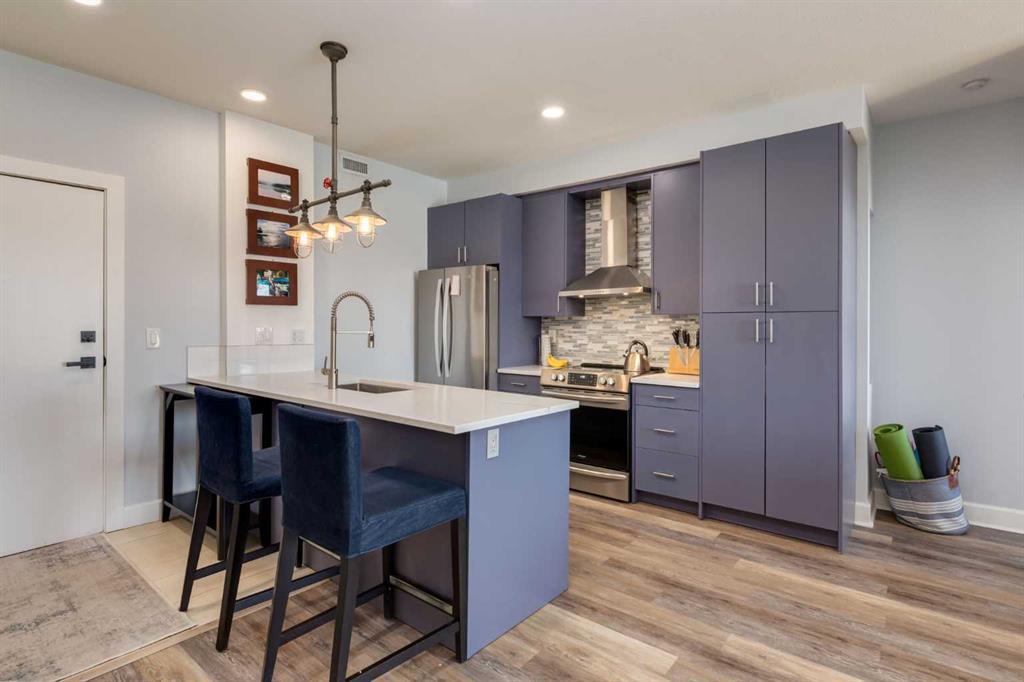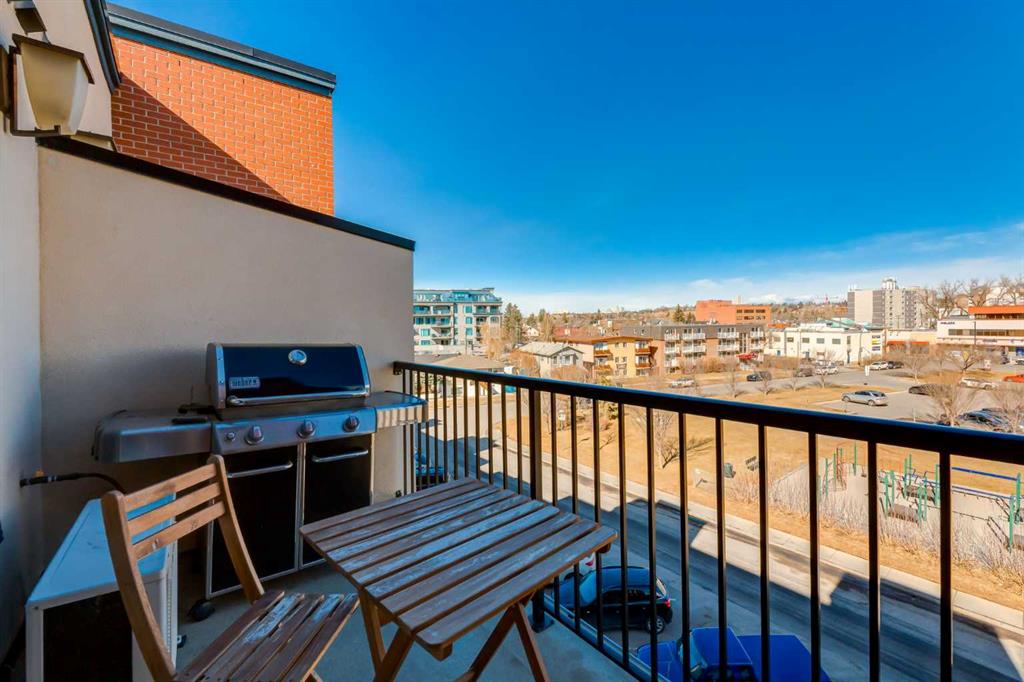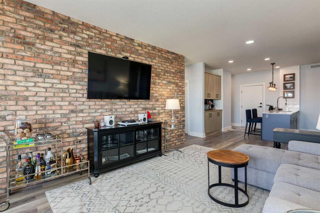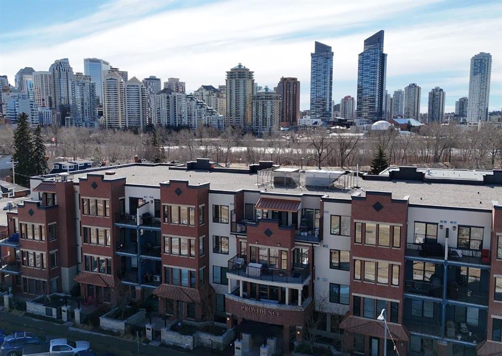 Welcome to Kensington living at its finest in The Providence Condo. This beautifully maintained building offers secure underground titled parking, storage, and a fully equipped fitness facility, all in one of Calgary’s most walkable and vibrant inner-city communities. Perched on the top floor, this fully renovated 2-bedroom, 2-bathroom residence showcases a bright contemporary design with refined industrial character. Thoughtfully curated finishes include Edison-style pendant lighting, a striking Chicago brick feature wall, wide plank luxury vinyl flooring, and a custom built coffee bar, that adds both style and function. The open-concept kitchen makes a bold statement with rich navy cabinetry, stainless steel appliances, quartz countertops, and classic subway tile backsplash—perfectly designed for everyday living and entertaining alike. Both bedrooms and the private balcony capture impressive views toward Kensington and Southern Alberta Institute of Technology, while the spacious primary retreat features a walk-through closet with storage space designed and installed by California Closets, leading to a beautifully updated ensuite complete with vessel sinks and elevated finishes. The 2nd bedroom has also had the California Closet treatment, because we know how important storage spaces are! Just steps from trendy restaurants, cafés, groceries, transit, and the pathways along the Bow River, this home delivers the ultimate urban lifestyle in one of Calgary’s most sought-after neighbourhoods