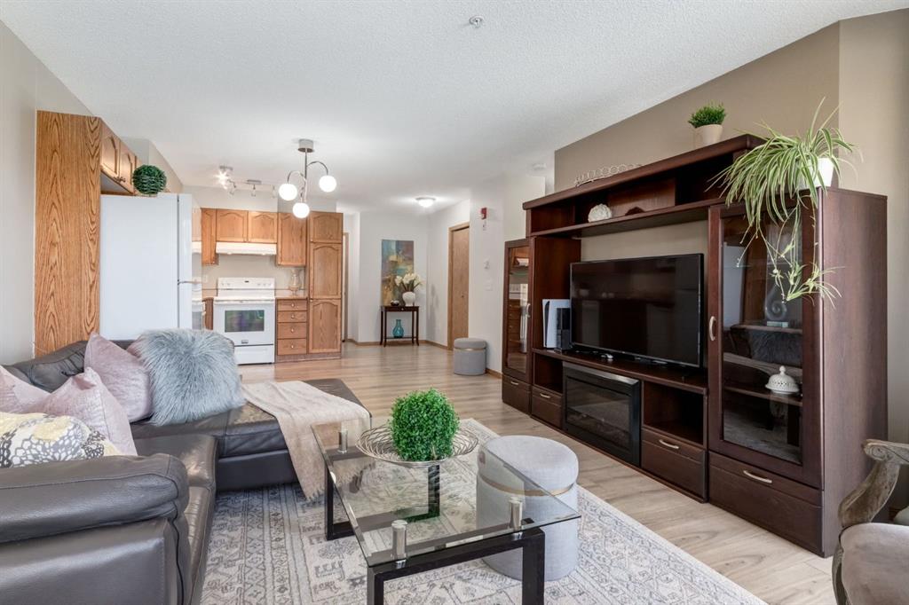Welcome to this beautifully updated two-bedroom 1 bath and underground parking condo offering exceptional value and an unbeatable location. Thoughtfully designed with an open-concept layout, this home features a spacious kitchen that flows seamlessly into the dining and living areas, creating the perfect space for both everyday living and entertaining. Large windows invite in natural light, while the sliding doors lead to a private, east-facing balcony surrounded by mature trees—an ideal setting to enjoy your morning coffee in a peaceful, green outlook. The unit offers two generously sized 2 bedrooms and a well-appointed four-piece bathroom, along with the convenience of in-suite laundry and additional storage. Stylish newer luxury vinyl plank flooring enhances the modern feel throughout, adding both durability and elegance. Located in a well maintained 25+ adult building, this home provided a quiet and comfortable lifestyle. Enjoy the added benefit of underground heated parking and the ease of having all utilities included in condo fees - heat, electricity included making budgeting simple and stress free. Positioned within walking distance to LRT, YMCA, Library, theater and a wide range of shopping and amenities, this is truly a location that offers both convenience and lifestyle. A perfect opportunity for downsizes, first time home buyers, or investors.- do not miss your chance to call this home.