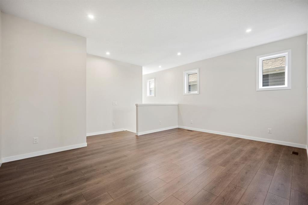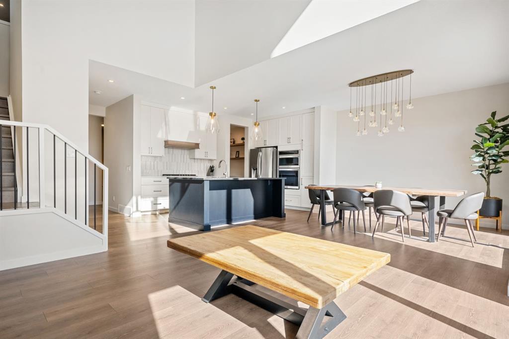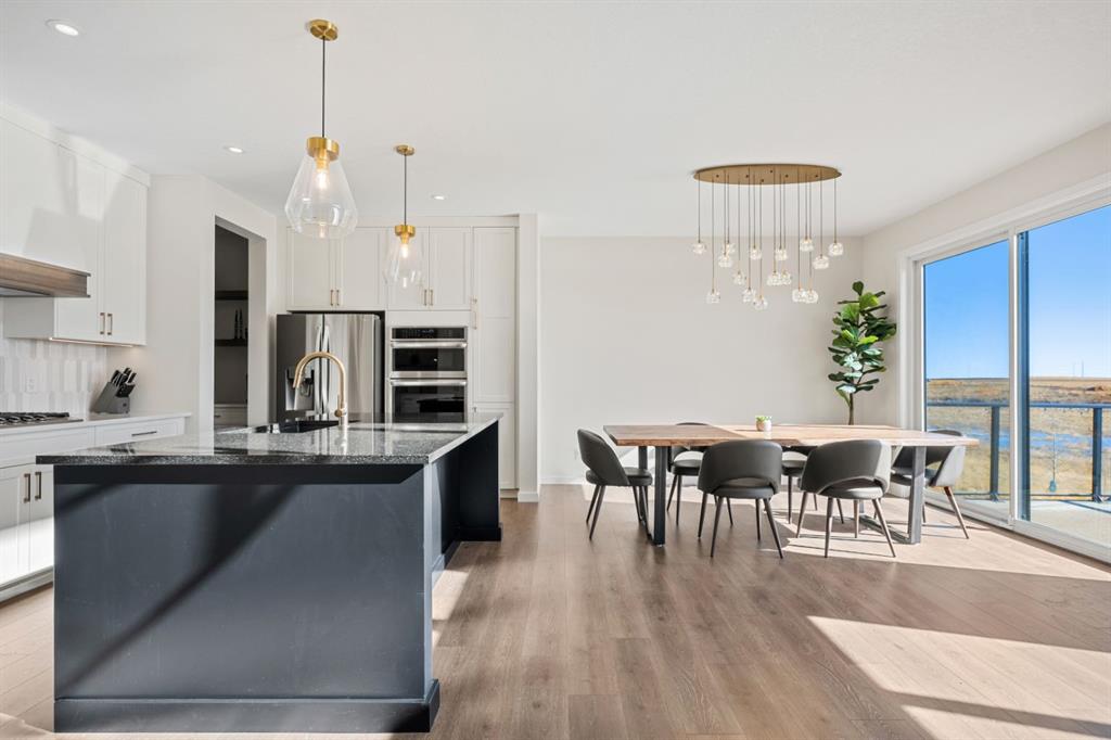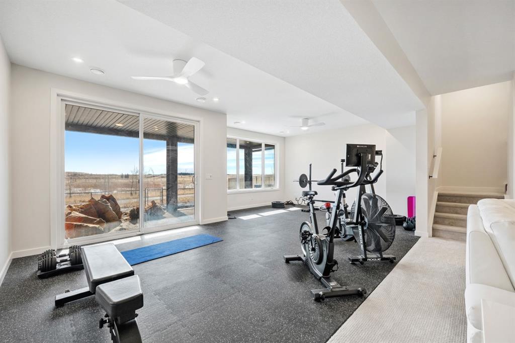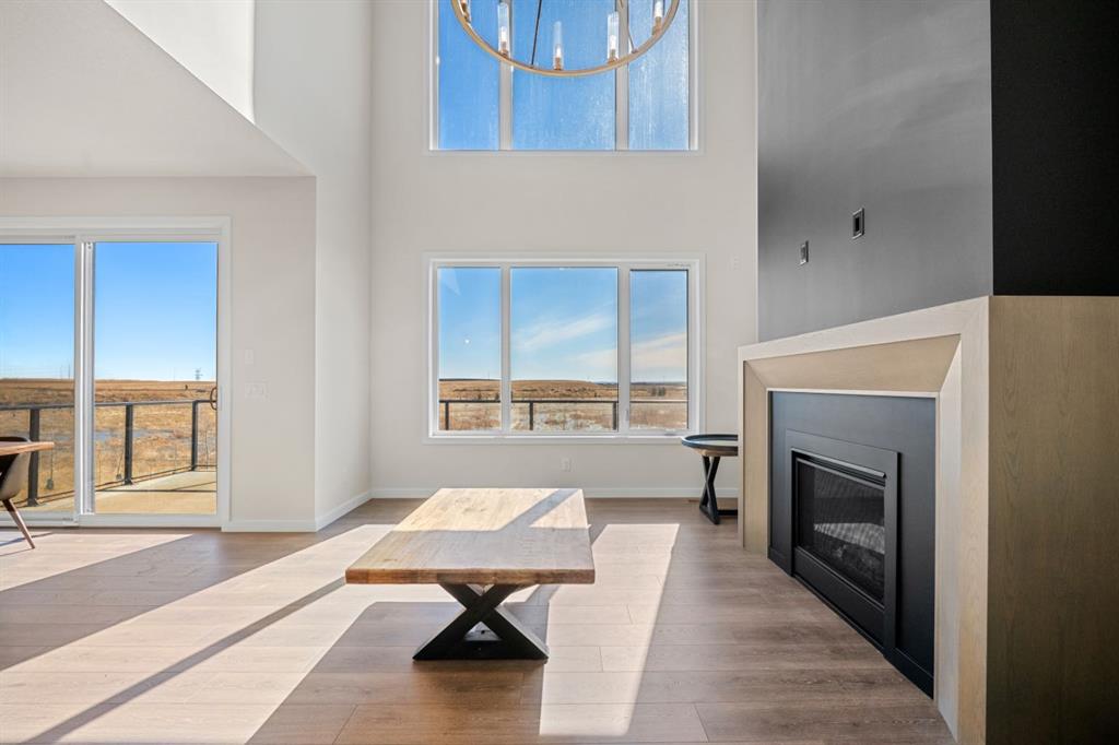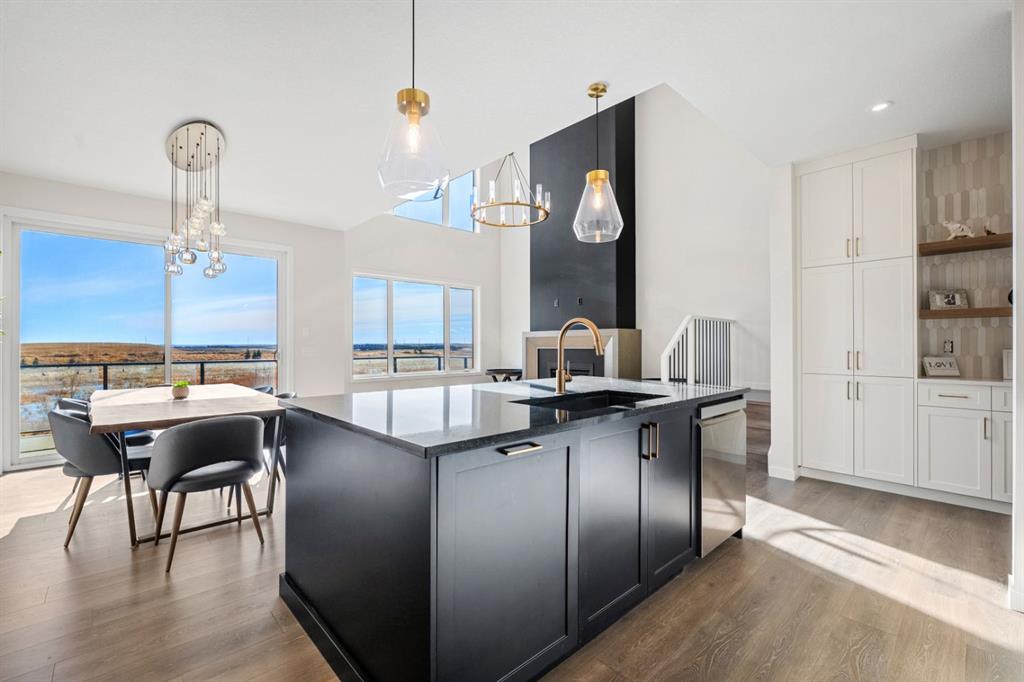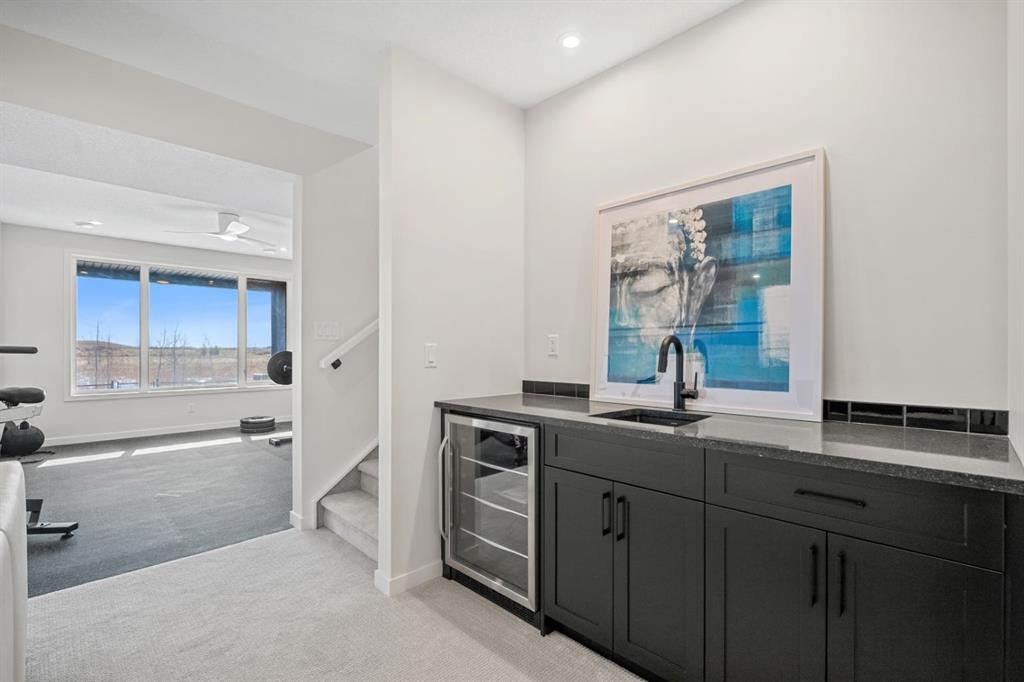 Thoughtfully upgraded far beyond builder spec, this exceptional Baywest walkout in Rangeview offers elevated design, premium finishes, and an outstanding rear setting with open views. Built with long-term living in mind, this home showcases a bright open-concept layout with a dramatic open-to-above great room, oversized windows, and a striking floor-to-ceiling fireplace feature wall. The chef-inspired kitchen was extensively upgraded with full-height cabinetry with crown to ceiling, quartz surfaces, farmhouse sink, upgraded hood fan, under-cabinet lighting, pot drawers, built-in waste and recycling pullouts, a reconfigured island, butler’s pantry, and custom built-in storage. Upstairs, the upgrades continue with luxury vinyl plank on the staircase and second level, 8-foot interior doors, upgraded railings, built-in bench seating, and a beautifully appointed primary retreat featuring a freestanding soaker tub, curbless glass shower extended to the ceiling, makeup counter, and enhanced walk-in closet shelving. The fully finished walkout basement adds valuable living space with a large rec room, bedroom, full bath, bar area, and zoned comfort. Outside, the home is equally impressive with cement board/Hardie exterior details, black exterior windows, Gemstone lighting, a screened-in upper deck with motorized screen, clear glass railing, vinyl decking, covered lower patio, BBQ gas line, and a heated garage with floor drain. A rare opportunity to own a highly upgraded, move-in-ready walkout home in one of Calgary’s most distinctive emerging communities.