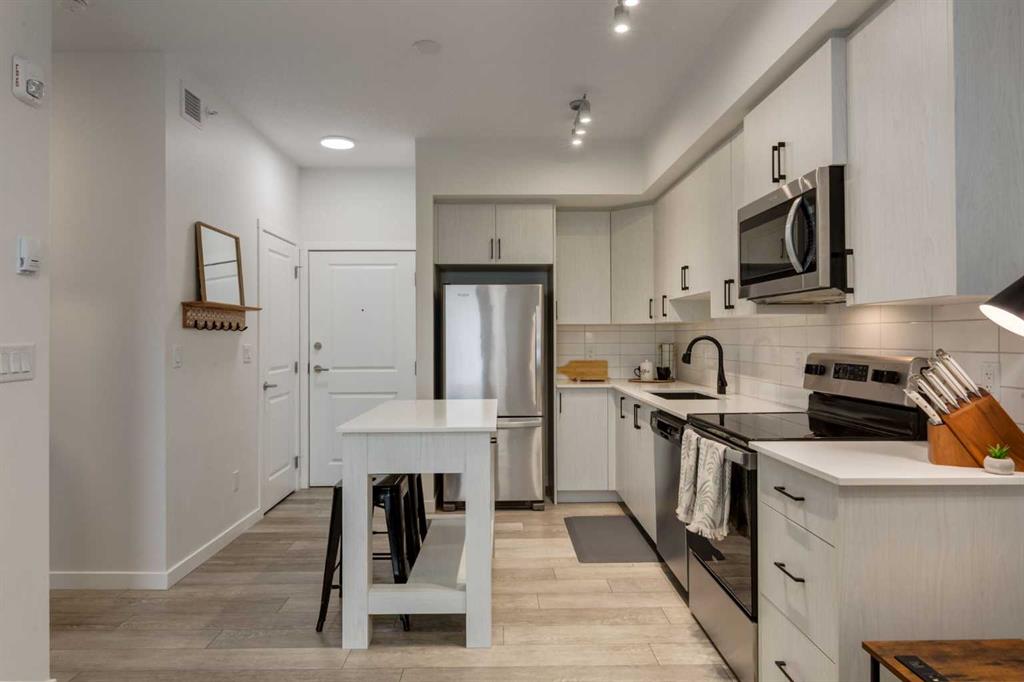 Welcome home to this beautifully upgraded top floor condo; 2 bedrooms, 2 bathrooms, 1 titled underground parking with one assigned storage, offering the perfect blend of modern style, functionality and comfort in one of Calgary’s most desirable northwest communities. Step inside to a bright, open concept layout featuring luxury vinyl plank flooring and an abundance of natural light throughout. The upgraded kitchen impresses with quartz countertops, full height cabinetry, stainless steel appliances and a movable island for added flexibility. It flows seamlessly into the living area, creating an inviting space for both everyday living and entertaining. Enjoy sunsets from your private balcony, complete with a gas line for your BBQ. The spacious primary bedroom features a sizeable closet and a private ensuite. A second bedroom offers versatility for a home office, gym, or guest space, while in-suite laundry adds everyday convenience. Additional highlights include a titled parking stall, assigned storage locker, secure building access and well maintained common areas. Located in the vibrant community of Sage Hill, you’re just minutes from shops, restaurants, grocery stores, fitness studios, and scenic walking paths, with quick access to Stoney Trail and Shaganappi Trail for an easy commute! Book your private showing today.