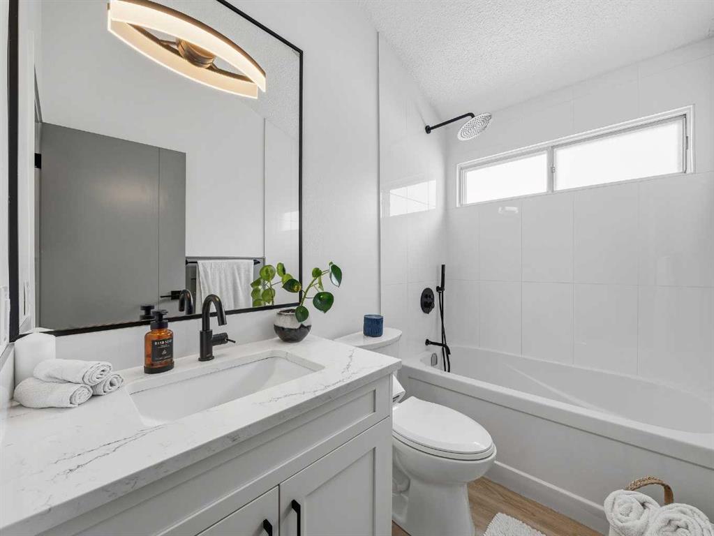 Rare opportunity to own a fully renovated bungalow with an oversized double detached garage in sought-after Huntington Hills NW. Offering 3 bedrooms, this home combines modern upgrades with timeless design, including new solar panels, a new heat pump/furnace combo, and a new roof on both the home and garage. Inside, you’ll find an exceptional open-concept layout with vaulted ceilings, large windows, and a bright, airy feel. The designer kitchen features quartz countertops, white & grey shaker cabinetry, matte black hardware, subway tile backsplash, and new stainless steel appliances. The living area is warm and inviting with a wood-burning fireplace, while the main floor is completed by three spacious bedrooms and a beautifully renovated full bathroom with modern finishes. The partially finished basement offers high ceilings and future development potential. Outside, enjoy a fully fenced yard, west-facing backyard with patio and gas line, east-facing front porch, and a rubber-paved driveway with ample parking. Located on a quiet street just minutes to schools, parks, shopping, and the inner city, this home offers the perfect blend of style, efficiency, and convenience. Book your private showing today.