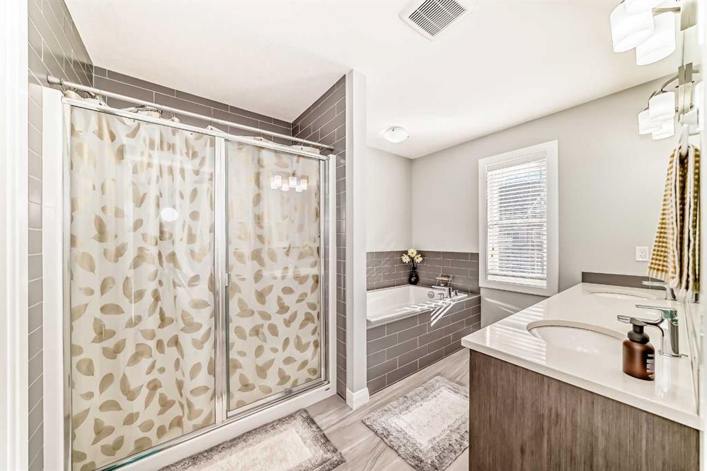 Welcome to this stunning 2-storey detached home located in the sought-after Redstone community of NE Calgary, just minutes from the YYC Airport. Built on a conventional lot, this property offers modern design, thoughtful layout, and convenience for growing families or investors alike. The main floor features a bedroom/den and full bath, perfect for guests or multi-generational living. Enjoy open-concept living with a bright dining area and a spacious living room highlighted by a gas fireplace tiled to the ceiling. The chef-inspired kitchen boasts maple wood cabinets, quartz countertops, and a walk-in pantry, offering both style and function. Upstairs, the primary bedroom includes a luxurious 5-piece ensuite and a huge walk-in closet. Two additional large bedrooms share a full bathroom, and the laundry room with side-by-side washer and dryer adds everyday convenience. The basement comes with a separate side entry and is developed as a two-bedroom (illegal) suite with 9-ft ceilings—ideal for extended family ( Currently rented for $1300 per month). This property is just 10 minutes to Airport , walking distance to shopping center and upcoming New Gurdwara ( Cornerstone). To book a showing call your favorite realtor!