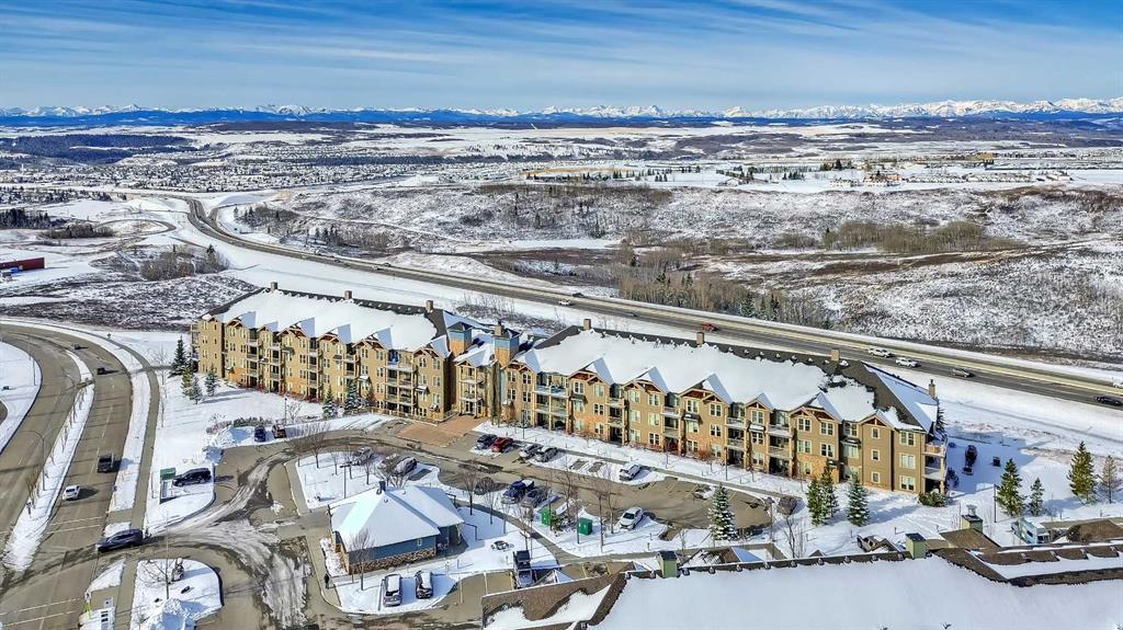 Enjoy stunning mountain views from every major room in this top floor 2 bedroom, 2 bathroom condo in the sought-after community of Sunset Ridge. From your private balcony to your main living space and both bedrooms, the views create a rare and elevated living experience that truly sets this unit apart. Inside, the space is bright, clean, and thoughtfully designed with modern white cabinetry, stainless steel appliances, and in-suite laundry, including a newer washer and dryer (approx. 1 year old) and a new microwave. The primary bedroom features a walk-in closet and private ensuite, while the second bedroom and full bathroom offer flexibility for guests or shared living. A cozy, separate office nook provides a dedicated workspace without compromising bedroom space. A standout feature is the TWO titled parking stalls — one heated underground with storage and one surface stall — a rare and valuable combination in the building. Located in Alora at Sunset Ridge, a professionally managed building with a fitness centre, guest suite, and visitor parking. Surrounded by pathways, parks, schools, and everyday amenities, this is a unique opportunity to enjoy scenic, elevated living in one of Cochrane’s most desirable communities.