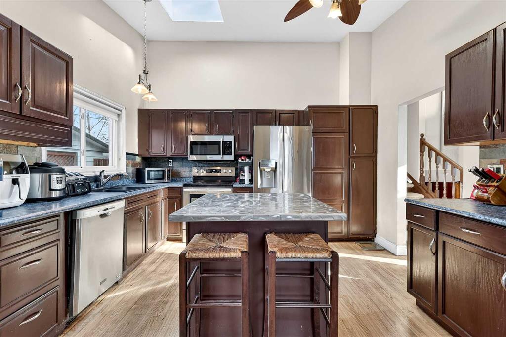 OPEN HOUSE: Sunday, March 29th 1pm-3pm *** Amazing potential in the coveted golf course community of Willow Park. Situated on a 50x100' lot, this well-loved 4 bedroom mid-century style four level split offers an excellent opportunity for a renovation that reflects your own style. The front veranda, perfect to enjoy the sun with your morning coffee, welcomes you into a spacious living room with A-frame vaulted ceilings and hardwood floors. The kitchen features a vaulted ceiling with a skylight, classic cabinetry, generous counter and storage space, and a spacious dining area that opens large West facing backyard to enjoy the evening warmth and for backyard entertaining The upper level includes three bedrooms. The lower level offers a family room with a feature fireplace and beautiful classic paneling, along with a fourth bedroom, a full bath, and laundry. The basement provides additional flex space and extra storage. A double detached garage completes the home. Majority of the windows were replaced in 2015. Located in the sought-after neighbourhood of Willow Park, the home is surrounded by amenities such as the Italian Centre, Southcentre Mall, Walmart, shops, restaurants, and the 18 hole Willow Park Golf Club. The area also provides convenient access to the Ctrain and major roads for easy travel throughout Calgary.